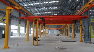 堆垛起重機由輕型起重標準組件設備組成,主要是由一個輕型起重機標準組件雙梁懸掛式起重機和一個專用堆垛小車組成。